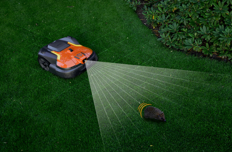 Die integrierte Kamera erkennt Objekte auf dem Rasen, identifiziert und klassifiziert sie mithilfe von KI und agiert dann entsprechend dem jeweiligen Objekttyp. Ganz gleich, ob es sich um Personen, Tiere oder vergessenes Spielzeug handelt, der Mäher vermeidet all das zuverlässig. Auf diese Weise wird das Risiko unerwarteter Stopps und Schäden am Mäher und Objekten im Garten reduziert.
